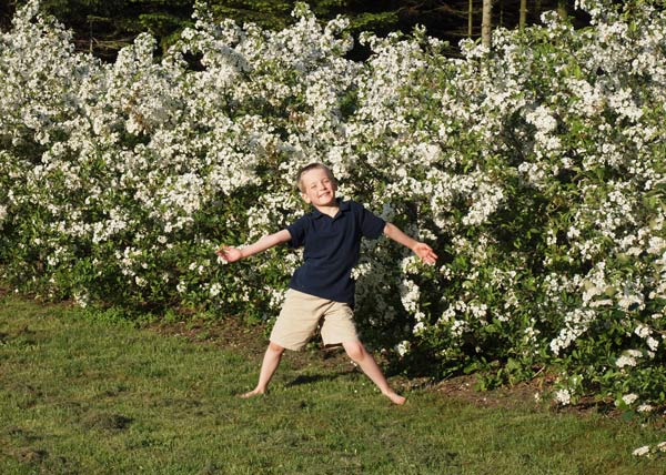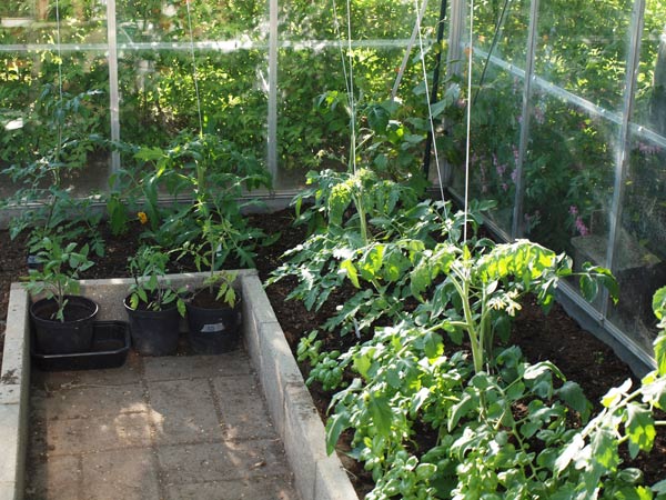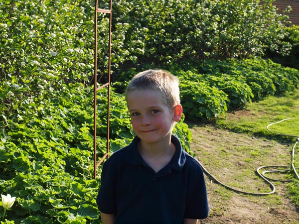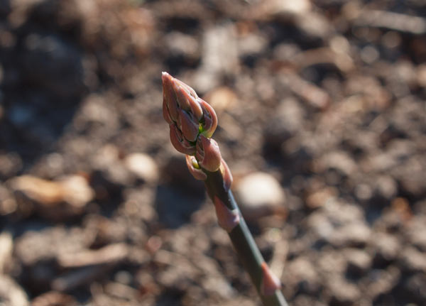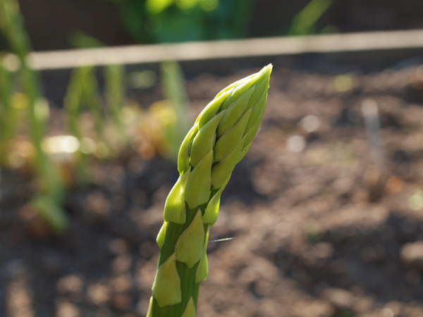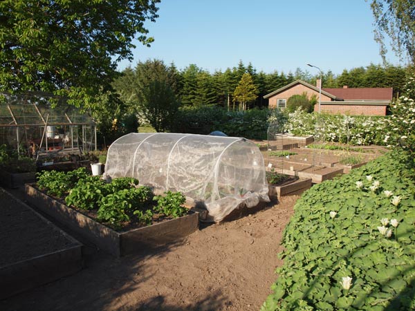 Vi kan nærmest ikke følge med til at spise aspargesene, inden de bliver for store. De røde asparges, jeg har sat i år, har netop stukket små fine hoveder op – men jeg må jo væbne mig med tålmodighed de næste 2-3 år. Der er også spinat og radiser, vi spiser af. I drivhuset gror det også flittigt, der er bittesmå agurker og en lille mini tomat på vej. Basilikum spirer i bunden, og det, der er plantet over fra en købt potte, giver allerede masser af lækker basilikum. Det eneste, jeg ikke har haft held med, er ærterne, jeg ved ikke, hvad der er sket, men to hold, jeg har sået, er ikke kommet op. Er lidt træt af at skulle undvære ærter… Måske jeg prøver en tredje gang.