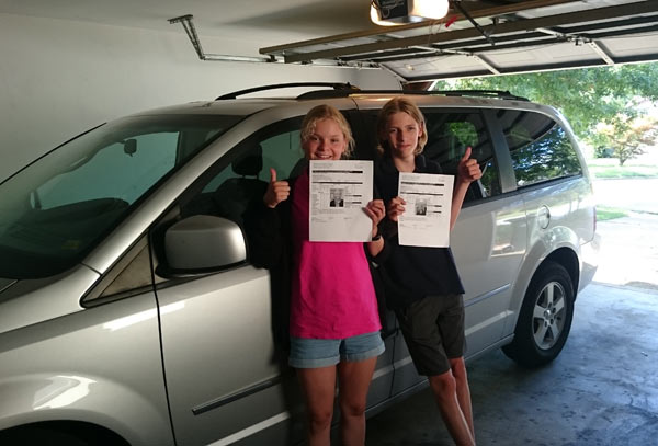 Her i Missouri, kan man begynde at køre, når man er 15 år, bare man har bestået teoriprøven samt en synsprøve og en skilte-prøve. Man behøver ikke gå til noget teoriundervisning (det i skolen var bare “ekstra”), men man får et hæfte om færdselsregler, skilte, lovgivning og bøder, som man skal læse inden prøven. Hvis man består alt dette, får man sin første “permit”, hvilket betyder, at man må køre med sin mor eller far ved siden af. Signe og Jeppe klarede begge det hele fint og bestod, så nu har de første del af deres kørekort 🙂 – og dette til den nette sum af ialt 4 ½ dollars pr. barn. Vi brugte en del tid i ugen på at læse hæftet igennem og lave masser af prøve-tests på nettet. Det sværeste var at huske alle deres straffe og bøder for at køre påvirket eller uden forsikring – det fyldte en del kapitler i bogen.
