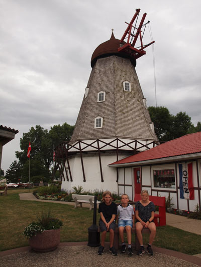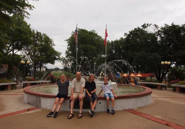 Vi stod tidligt op onsdag morgen, så vi kørte fra Rolla klokken kvart over fem. Vi nåede et godt langt stykke, for ungerne sov helt til 9.15 – der er flere fordele ved en stor bil :-). Vi spiste vores medbragte morgenmad på en rasteplads nord for Kansas og fortsatte mod Elk Horn, den lille “danske” by i Iowa. Her så vi den gamle vindmølle fra Nørre Snede, og et fint lille museum med masser af muselmalet og Viktor Borges flygel. Den ældre dame i museet fortalte, hun havde familie i bl.a. Ålborg, men hun ville ikke tale dansk. Elk Horn virkede meget “turistet”, men den var hyggelig med bænke malet som danske flag osv. Der var vist af til “danish mill” langt ude på motorvejen.