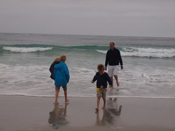 Det er ikke varmt i vandet i Californien!!!! Kan huske da jeg var i LA havde jeg på ingen måde lyst til at tage en dukkert, for hold op det var koldt. Der er jo også en grund til at surferne har våddragter på. Men luften er varm nok, så jeg tror I nok skal få varmen igen når I kommer længere sydpå.