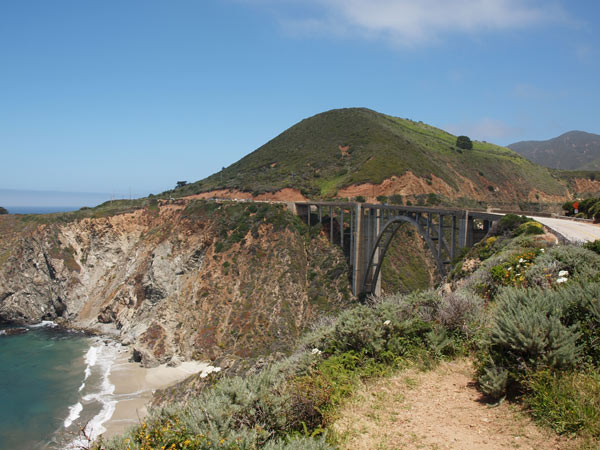 Herefter fandt vi ud mod kysten for at tage Highway 1 ned mod Los Angeles. Det er simpelthen den flotteste natur, jeg har set. Grand Canyon var jo også super flot men alligevel noget andet. Her hvor Stillehavets fine blå vand kastes ind mod de rå klipper, vejen bugter sig gennem landskabet, og bjergene rejser sig lige ved siden af, er der så frodigt, grønt og fuldt af blomster. Rundt om hvert sving åbenbarer der sig den ene fantastiske udsigt efter den anden – flottere end noget postkort. Heldigvis er der masser af “vista points”, hvor man kan holde ind og tage billeder. Man kunne blive ved i en uendelighed, men desværre var vores program jo blevet kortet ned, vi ville have haft en overnatning halvvejs til LA, men måtte køre hele vejen pga. tidsnød. Det var ellers en strækning, man godt kunne have brugt længere tid på. Vi var begge meget positivt overraskede over, hvor flot det var, og vi vidste slet ikke, der var så rigt et dyreliv.