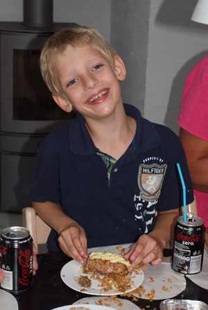 Det var selvfølgelig dejligt at komme hjem igen til hus, have og ikke mindst familie og venner. Og Jeppe nød en god remu-mad.