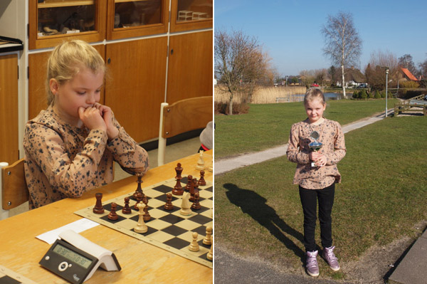Signe vandt 5½ point ud af de 7, hvilket gav en flot 2. plads. Hun er simpelthen så sej! Hun har spillet en del skak på det sidste, så det er dejligt for hende, at det gik så godt. Vi er altid meget stolte af vores skønne datter, men derfor er det nu alligevel specielt at se hende i disse situationer også. Men det bedste er, at hun selvfølgelig er glad men på ingen måde er krukket eller hoverende over at være en af Danmarks allerbedste pige spillere på sin alder, hun er bare Signe! Og det er faktisk det, jeg er allermest stolt af!