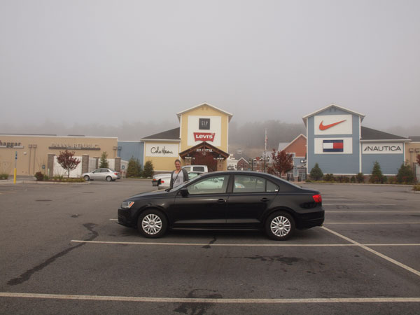 Søndag morgen kørte vi til et stort outlet. Vi kom godt nok en time for tidligt, så vi kørte en tur til en lille by, der hedder Hollis. Her var en gårdbutik med pluk-selv æbler, masser af græskar og tomater. Det var tåget fra morgenstunden, men det lettede heldigvis, så vi kunne nyde det flotte landskab. Resten af dagen gik med indkøb, inden vi kørte til hotellet i Laconia.