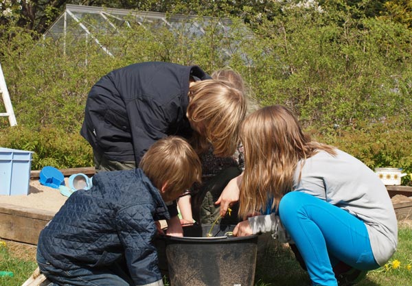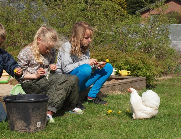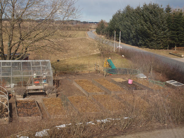 Vi kan nærmest ikke følge med til at spise aspargesene, inden de bliver for store. De røde asparges, jeg har sat i år, har netop stukket små fine hoveder op – men jeg må jo væbne mig med tålmodighed de næste 2-3 år. Der er også spinat og radiser, vi spiser af. I drivhuset gror det også flittigt, der er bittesmå agurker og en lille mini tomat på vej. Basilikum spirer i bunden, og det, der er plantet over fra en købt potte, giver allerede masser af lækker basilikum. Det eneste, jeg ikke har haft held med, er ærterne, jeg ved ikke, hvad der er sket, men to hold, jeg har sået, er ikke kommet op. Er lidt træt af at skulle undvære ærter… Måske jeg prøver en tredje gang.