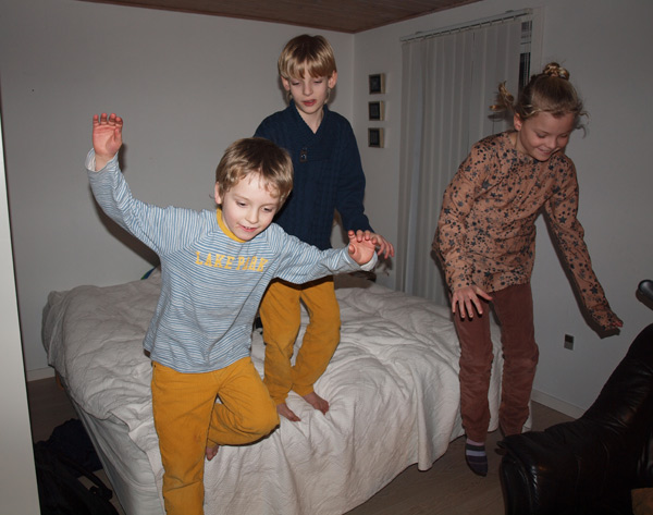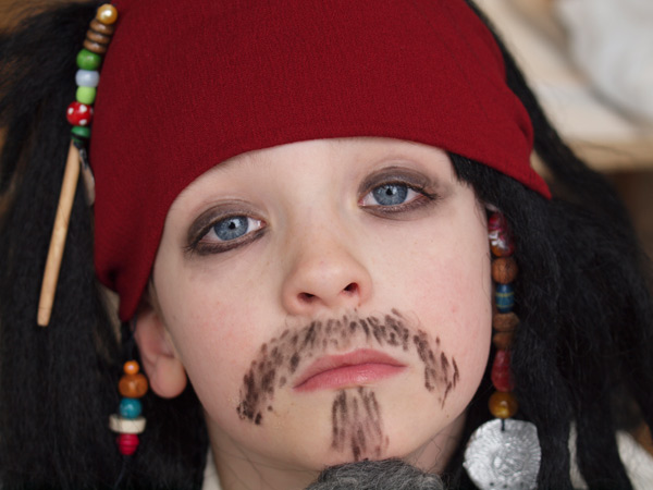 Jeg kan jo faktisk så godt lide det, selvom det tager vildt lang tid. Jeg synes simpelthen, det er så sjovt, når de bliver glade for det, jeg laver. Marius ville være Jack Sparrow, så vi har brugt mange timer på at studere billeder af Pirates of the Caribbean, for Jeppe og Signe ville så være Will Turner og Elizabeth Swann.