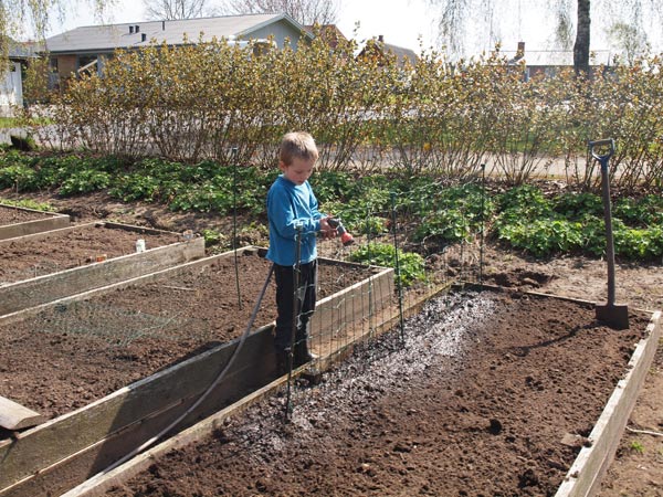 I dag viste vejret sig endelig fra forårs-siden. Synes april har været kold og træls, jeg synes i hvert fald ikke, jeg er så godt med i urtehaven, som jeg gerne ville være. Men i dag fik Marius og jeg gjort lidt ved det. Dahlia, Kartofler og løg blev sat den anden dag, der er sået salat, ærter og gulerødder og den røde grønkål har netop vist sig i såbakkerne i drivhuset. Tomaterne flytter ud og ind af drivhuset, jeg har set, der kan blive frostgrader igen sidst på ugen, så tør ikke plante dem derud endnu.