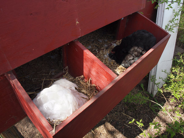 Vi venter utålmodigt på at se, om der kommer kyllinger om en uges tid. De to skrukker ligger side om side i hønsehuset, mens frøken Kylle Rylle har overtaget førerpositionen som førstedame til Store Storm.