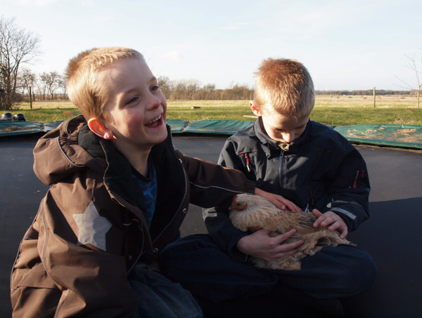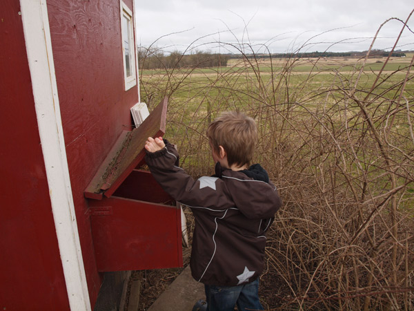 Marius har været hjemme i går og i dag. Han er lidt snottet, og så sagde han til mig den anden dag, at han da vist snart skulle holde fri fra børnehaven, for det havde han altså ikke gjort sigden 2010! (Hvor kom det lige fra???) Så jeg tænkte, at han hellere måtte blive hjemme. Han har været ude og kigge efter æg i dag – men der var desværre ikke nogen. Vi har ellers fået et lille et både mandag og tirsdag.