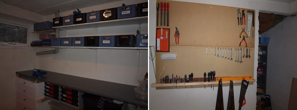 Imens havde vi andre 3 besøg af mormor og morfar. Vi blev næsten færdige i det lille værksted i kælderen. Der mangler lige en opslagstavle mere og nogle fodlister, men det er blevet rigtig fint, synes jeg. Dejlig lyst og med masser af opbevaringsplads (nu ligger alt værktøjet jo godt nok ovenpå, men mon ikke vi får plads til det alligevel).