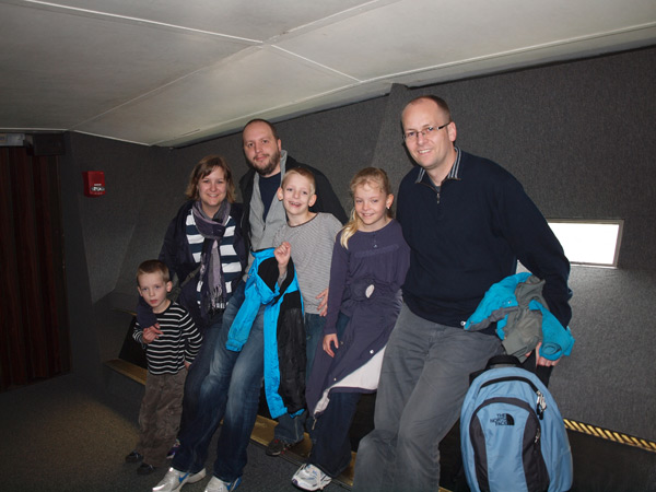 Herefter var der gudstjeneste. Det var meget anderledes end i en dansk kirke. For det første er det jo en ret ny kirke – mere som et slags hus med mange forskellige rum, der kan slåes sammen. Der er en lille scene, store højtalere, storskærm og et band med alt lige fra trommesæt til violin, der stod klar. Det hele var meget “uhøjtideligt” altså forstået på den måde, at der var moderne fællessang (selvfølgelig religiøst – men godt og iørefaldende) sammen med bandet, der var flere præster i almindeligt tøj, der var en del samtale mellem præst og kirkegængere, godmodige drillerier præsterne imellem og i det hele taget en god og hyggelig stemning. Børnene var med i den første del, hvor vi sang, og der var en speciel børneprædiken, hvor de kom op på scenen, og “snakkede” lidt med den ene præst – der i øvrigt var Grayce´ far (og ham der spillede el-guitar). Derefter gik de nedenunder til “børnekirke”, mens resten af gudstjenesten fortsatte.