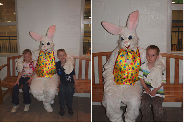 Vi har haft en dejlig dag, der startede med fødselsdagssang, både danske og amerikanske flag og gaver. Morgenmaden skulle vi have nede i centeret sammen med påskeharen og mange andre børn fra Rolla og omegn. Det var et gratis arrangement, hvor man kunne komme og få sund morgenmad (der viste sig mest at bestå af kagebord og frugt), lege forskellige lege, få taget billeder sammen med påskeharen og ikke mindst æggejagt. Det går ud på, at børnene deles i aldersgrupper, og så skulle de løbe ud og finde så mange plastik-påskeæg som muligt i hver deres spand. Inden i hvert lille påskeæg var der f.eks. klistermærker, små chokoladeæg, en hoppebold eller lignende. I nogle enkelte af æggene var der en “kupon”, man kunne bytte til en gave. Dem fik vi ingen af, men det var alligevel en rigtig hyggelig tradition, man godt kunne tage med tilbage til Danmark. I øvrigt var mange af børnene rigtig fint klædt på i små påskekjoler og lignende. Vi har hørt, at vejret derhjemme har været skønt – det kan vi ikke rigtig sige her – vi har nogle ret voldsomme torden og regnbyger i disse dage.