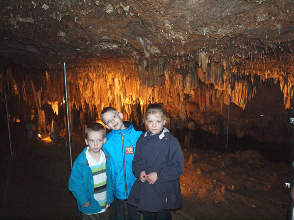 På grund af det ret ustabile vejr, valgte vi at tage en indendørs udflugt i dag. Vi tog ud til Maramec Caverns, der er nogle store drypstenshuler, hvor Jesse James engang skjulte sig. Det var rigtig flot at gå rundt dernede. Det var en guidet tur, der varede 1½ time. Bagefter spiste vi fødselsdagskager udenfor, inden vi kørte hjem igen.