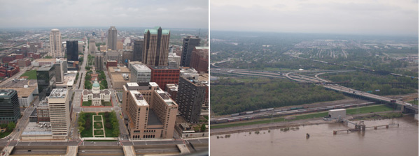 Søndag gik turen til St. Louis sammen med Morten og moster, der jo kun var kørt igennem byen på vej hertil. Vi havde besluttet at starte med Gateway Arch, hvor vi gerne ville op i toppen og nyde udsigten. Vejret var ikke det bedste, men vi tog derop alligevel. Turen derop foregik i nogle bitte små vogne, der lignede en lille “rumkapsel”. Der kan sidde 5 personer i hver. Når man kommer op til toppen, har man en fin udsigt over Mississippi-floden og Illinois mod øst og downtown St. Louis mod vest. Efter ca. 15 min, skal man samme vej ned igen med den lille vogn. Det går lidt hurtigere ned, og vi var heller ikke helt så beklemte ved situationen 😉 Nede under Gateway Arch er der et museum, hvor vi også gik en runde. Det handlede mest om Amerika på den tid, hvor man tog land fra indianerne.