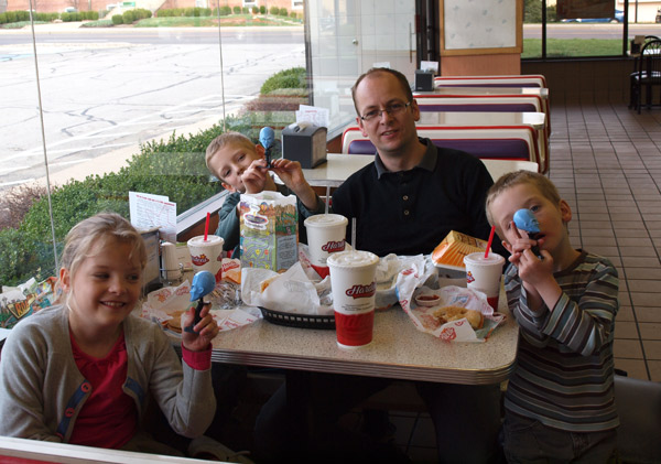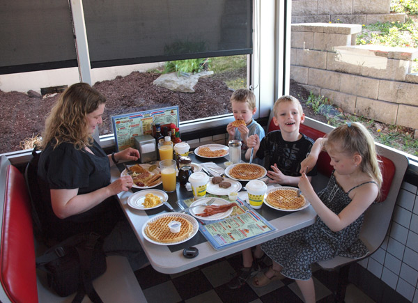 Her til aften var vi inviteret ud at spise af Mortens vejleder og hans kone. Vi fik lækker mad på en god restaurant her i Rolla. Ungerne opførte sig heldigvis pænt 🙂 Men man sidder altså heller ikke og hygger over maden herovre – ligeså snart man har spist (eller fået resten af maden pakket ned i en lille pose) bliver servicet fjernet, og så tager man hjem.