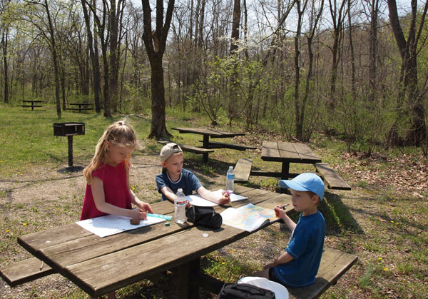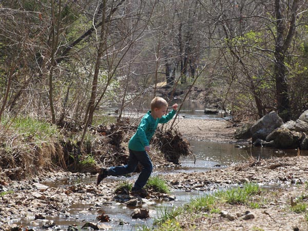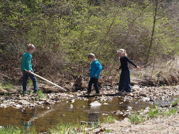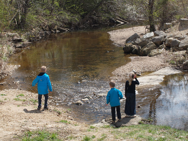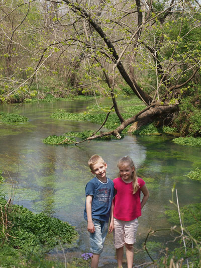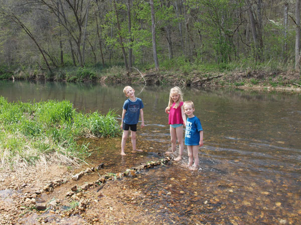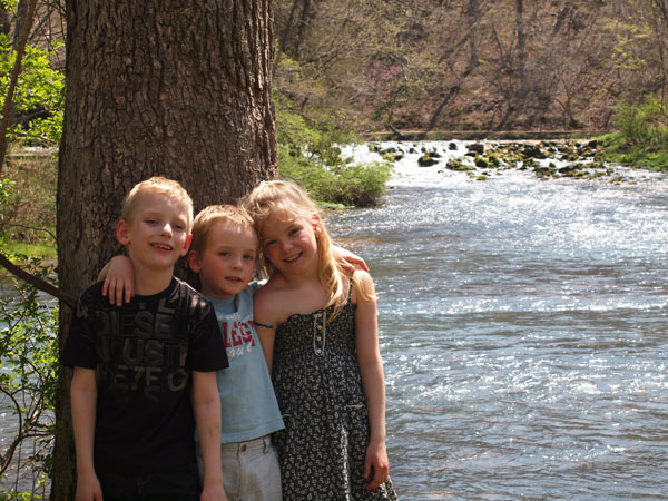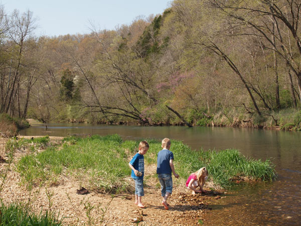 I dag kørte vi Morten på arbejde og fortsatte ud til en skøn lille plet ca. 12 miles syd for Rolla. Det hedder Lane Spring park, og her er skøn natur, en lille legeplads og en å. Vi havde en dejlig dag, hvor børnene hyggede sig, byggede dæmning i åen, legede på legepladsen og lavede lektier i solen.