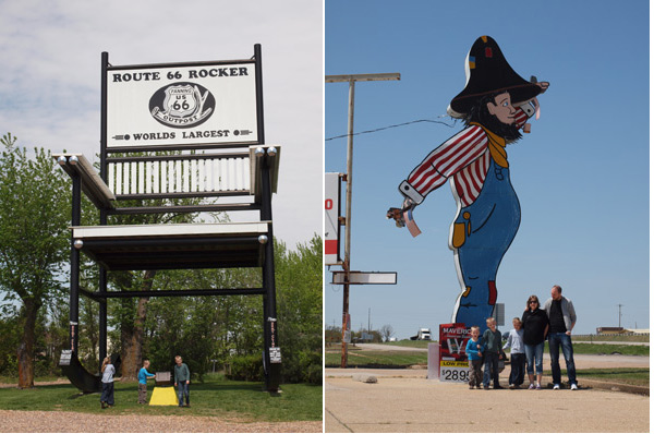 Herefter kørte vi til en af Route 66´ mærkelige attraktioner: verdens største gyngestol. Det var ca. lige så spændende som det lyder 🙂 Inden vi kørte hjem og fik en rugbrødsmad, var vi lige inde i Muldyrs-butikken, hvor de sælger alt muligt antik, brugt og ragelse. Det er vist manden her, der står udenfor og svinger med armene, der er det sjoveste.