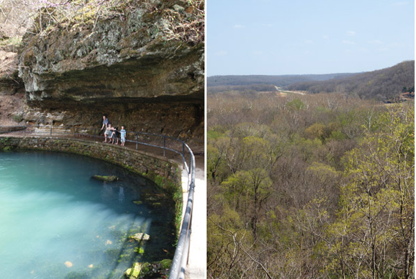 Vi gik lidt rundt i den smukke natur. Træerne er begyndt at springe ud, der er små violer overalt og de fineste klare åer, flotte vandfald og så sol og 30 graders varme. Det indbød lige til at dyppe tæerne – men vandet er koldt (ca. 13 grader året rundt), for det kommer lige nede fra jorden. Vi så der, hvor vandet væltede op af jorden. Der kommer ca. 100 millioner gallons vand op om dagen.