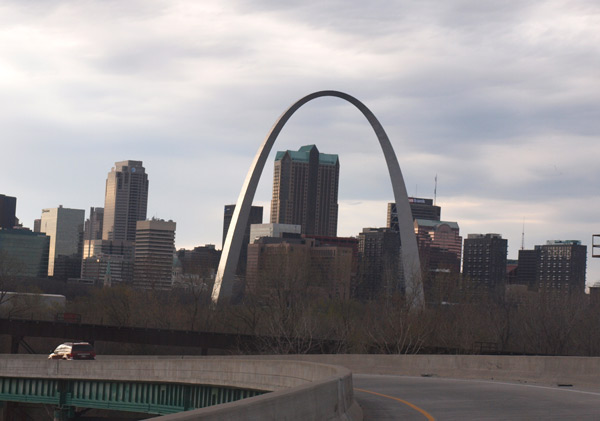 Herefter kørte vi ned i St. Louis downtown og gik en tur mellem skyskraberne. Vi gik også ned til St. Louis´ vartegn – Gateway Arch – eller porten til vesten, som den også bliver kaldt. Desværre kom vi for sent til at komme op i den, men det har vi så til gode. Den er et monument over USA´s udvidelse mod vest. Buen var færdig i 1967 og er 192 meter høj. Vi sad lidt og kiggede ud over Mississippi-floden. Der var både musik, hestevogne, helikopter og et brudepar, der blev fotograferet.