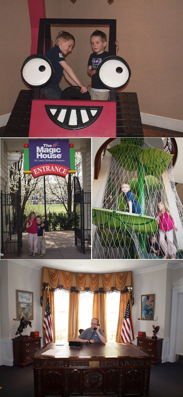 I weekenden tog vi så til St. Louis. Vores første stop var Sciencenter, der er et slags museum, der viser alt muligt om det naturvidenskabelige. Det var alt lige fra dinosaurer, naturfænomener og kemi-show til planetarium og kuglebane i kæmpe størrelse.  Meget af det kunne man få lov at røre og prøve selv. Vi var f.eks. inde og lære om fingeraftryk, og vi så et slags kemi-show, der handlede om bl.a. skyer og tornadoer. Men det, der nok vakte mest lykke, var den store, bevægelige dinosaurus og det ægte forstenede dino-hoved.