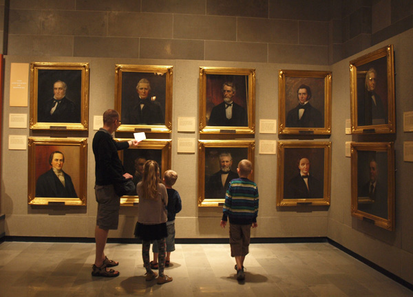 Vi ville ind og se Missouri State Capitol, der er en rigtig flot bygning både udefra og indeni. Det kunne godt ligne Det Hvide Hus lidt. Der var ikke ret mange mennesker, så vi havde både tid og plads til rigtig at se os omkring. Der var museum i stueetagen, der mest omhandlede Missouris historie – vi må nok tilstå, at der er en del huller i vores viden om den amerikanske borgerkrig og om Lewis og Clark ekspeditionen… Børnene var eksemplariske og gik stille og interesserede rundt i over to timer.