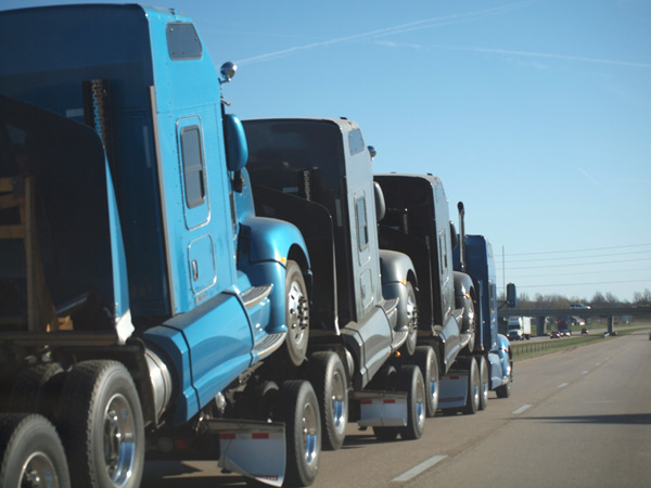 Nedenunder er der et billede af en af de flotte lastbiler – med tre andre på slæb.
